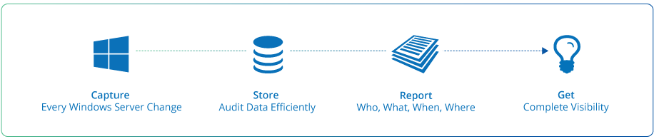 Audits all types of changes, not just event logs, providing complete visibility into Who did What and When with 'before' and 'after' values.